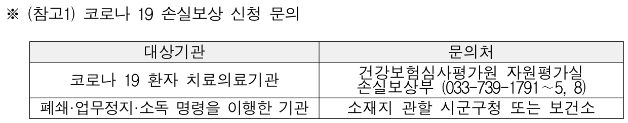 * ➊ 정부 등의 지시로 병상을 비워 환자치료에 사용한 병상 및 사용하지 못한 병상에서발생한 손실(~’22.5.31.)
