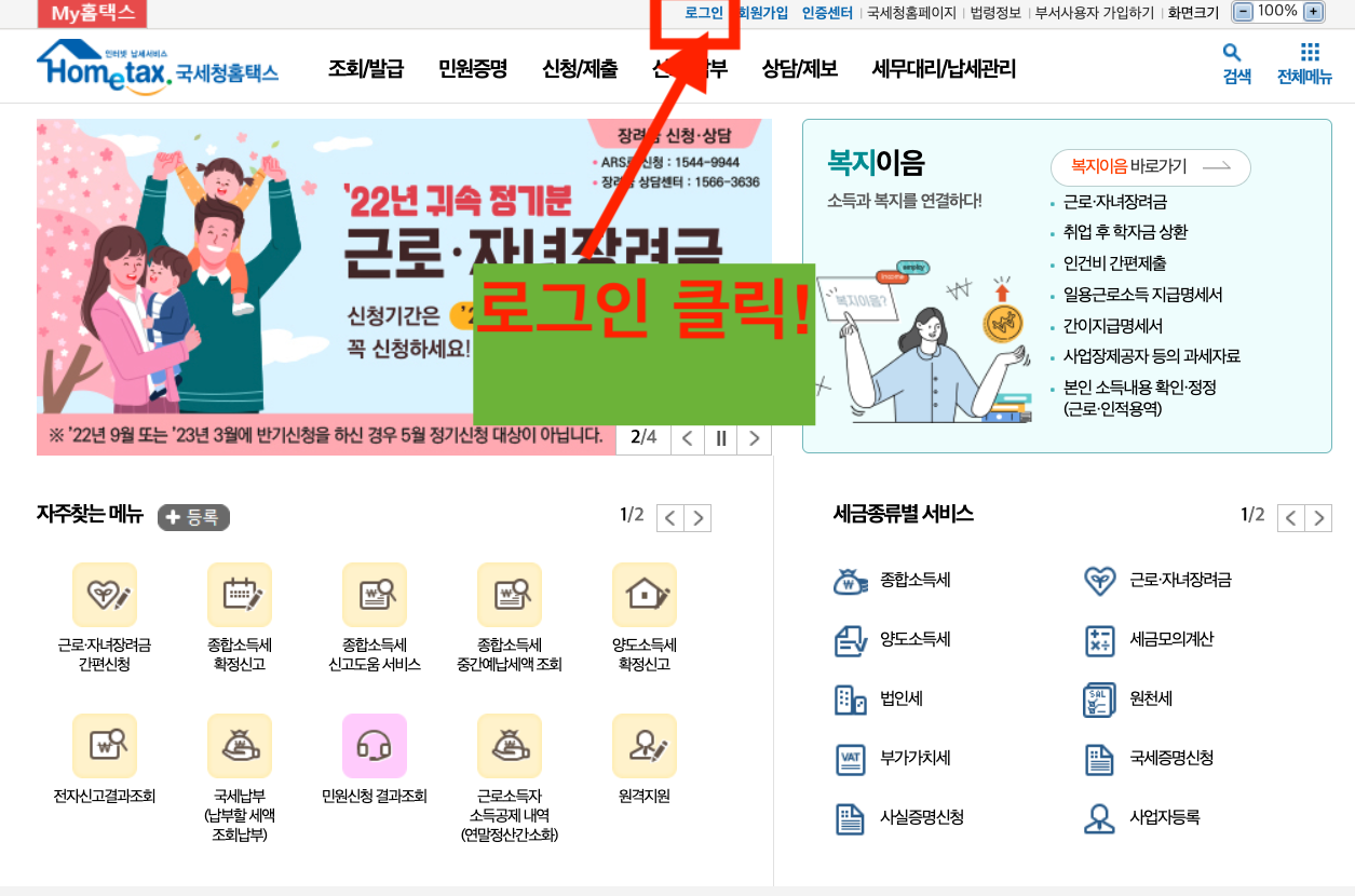 2) 홈택스 로그인 클릭