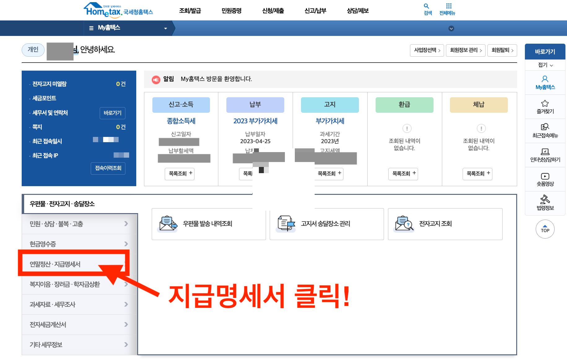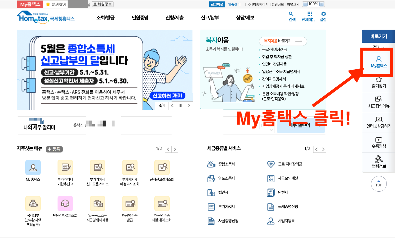 4) My홈택스 클릭!