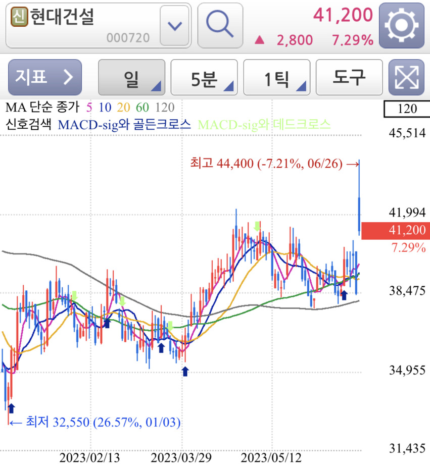 1. 현대건설 주가 차트 일봉