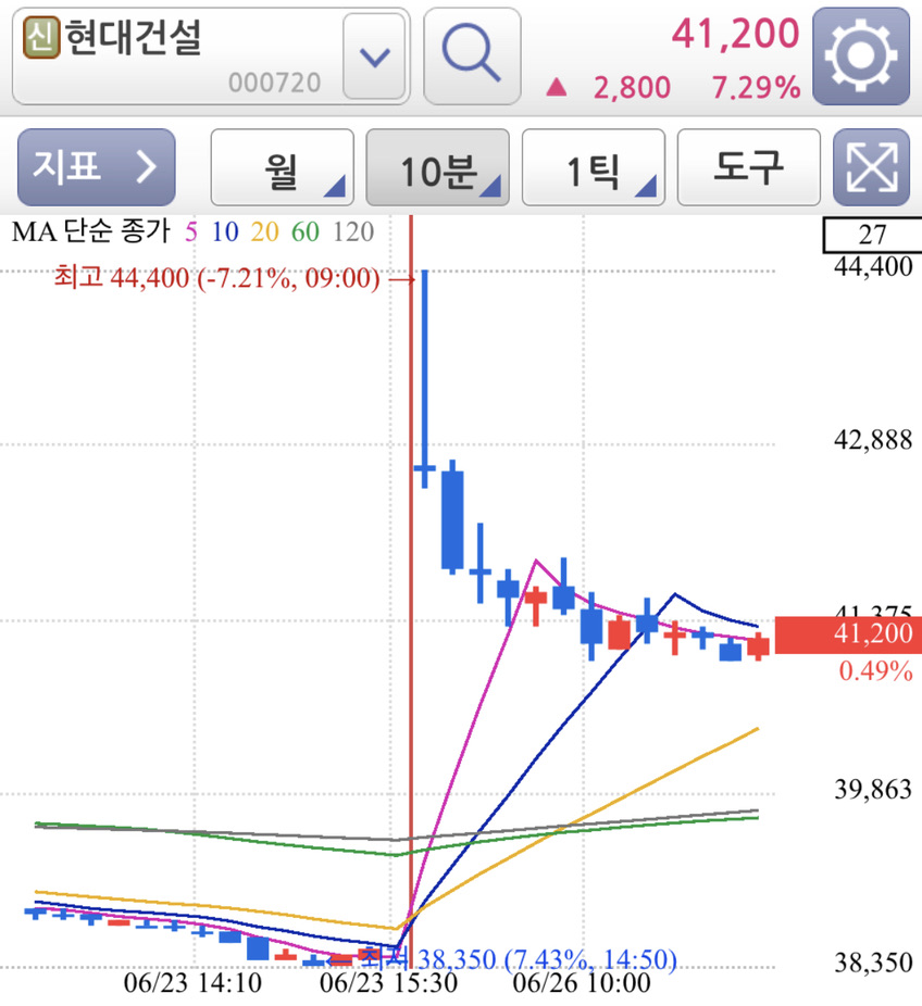 현대건설 금일 주가 흐름