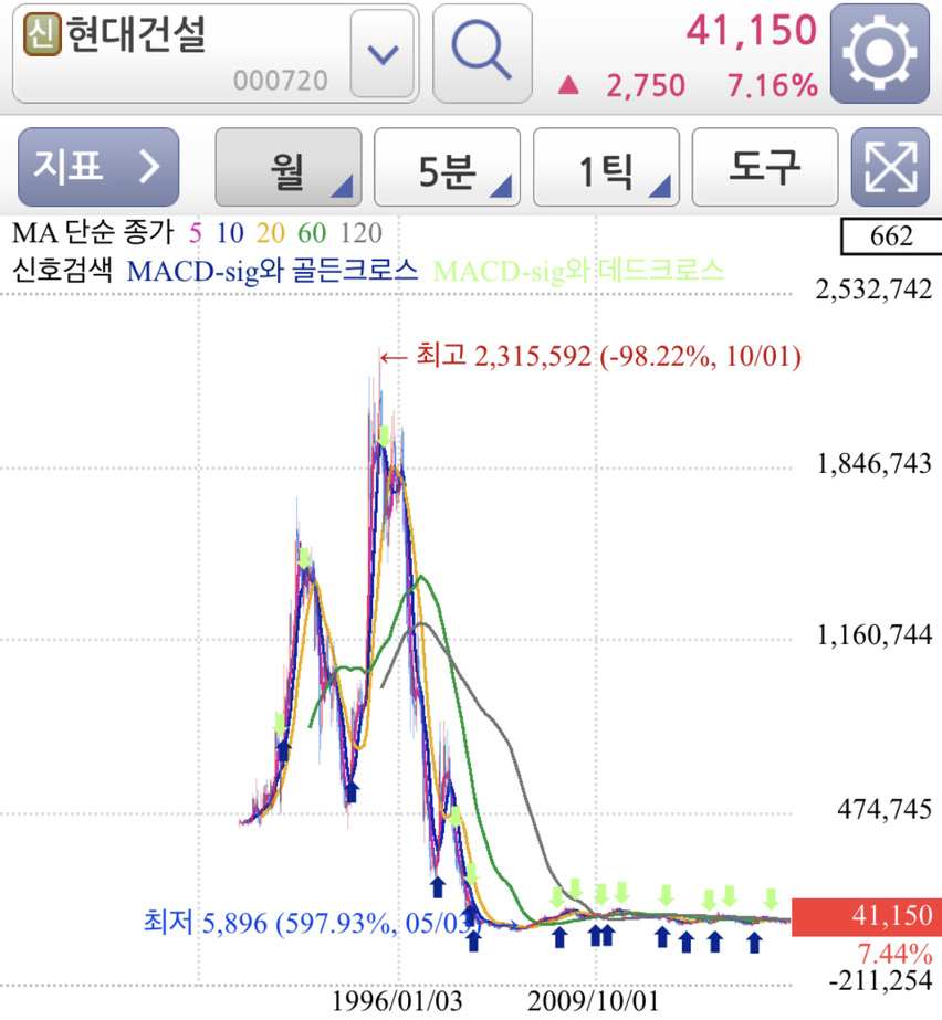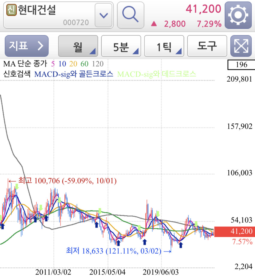 현대건설 주봉, 월봉 차트