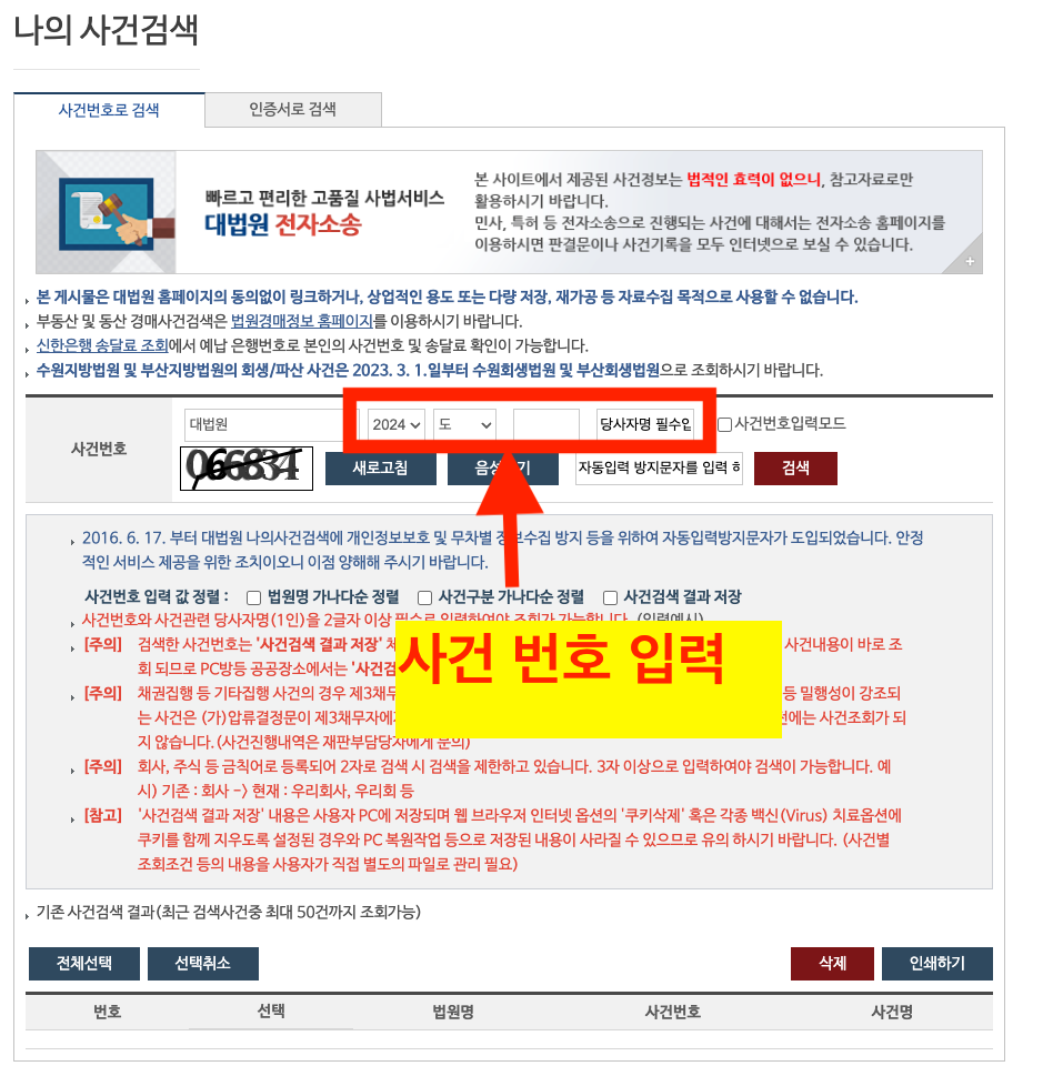 형사사건, 민사사건등이 발생하면 사건번호를 메모해두면 직접 조회가 가능합니다.