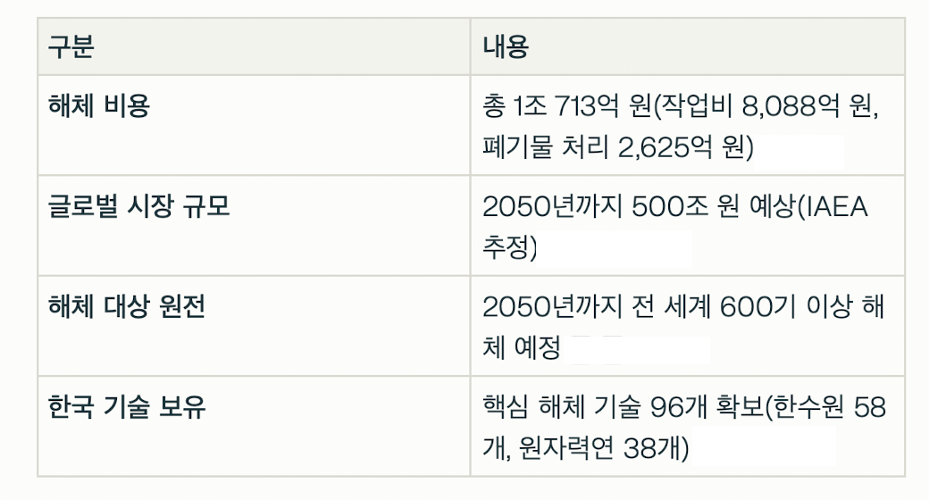 이는 한국이 원전 건설부터 해체까지 전 주기 기술을 확보하는 전환점이 되며, 500조 원 규모의 글로벌 원전 해체 시장 진출의 교두보로 평가받고 있다