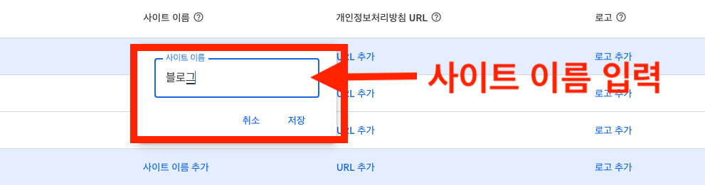 사이트 이름 입력
