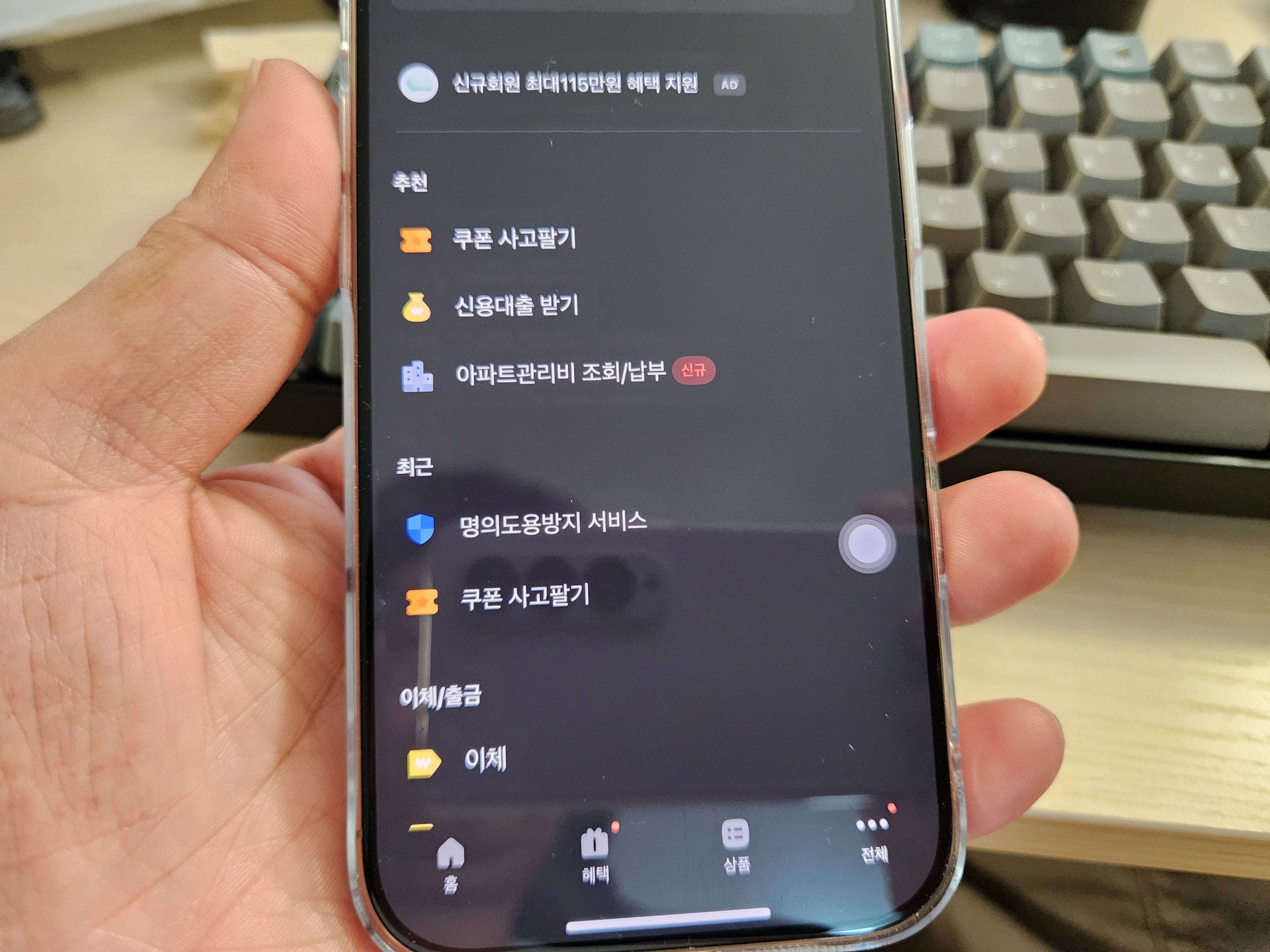 카카오뱅크 기프트콘 사고 팔기 메뉴도 인기가 많은 메뉴다. 은행 앱들이 슈퍼앱으로 변화하면서 DAU 증가를 위해서 금융외 다양한 서비스를 담아내면서 슈퍼앱 전략들을 펼치고 있다.