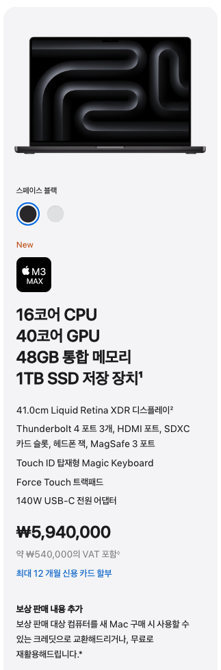 - M3 Max 칩 적용 모델 : 2가지