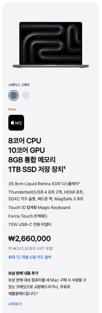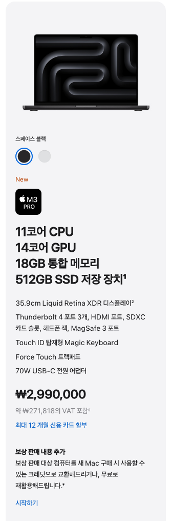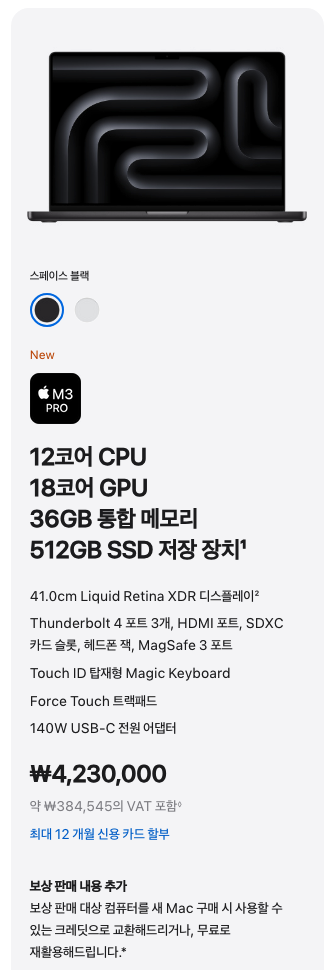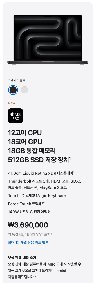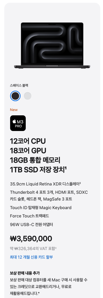 - M3 Pro 칩 적용 모델 : 2가지