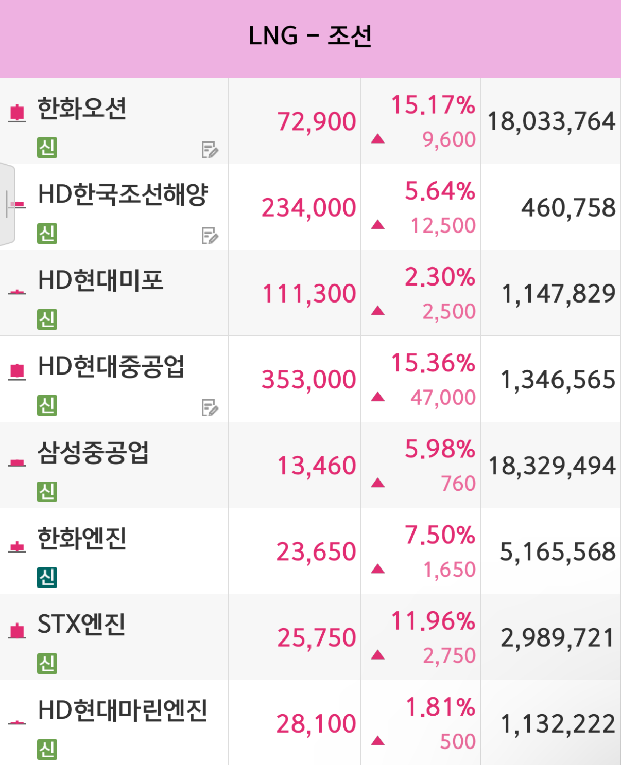 조선주 테마주 중에서 전체 종목을 관심 종목으로 담아두되, 대장주 몇가지는 반드시 흐름을 체크하는게 좋다