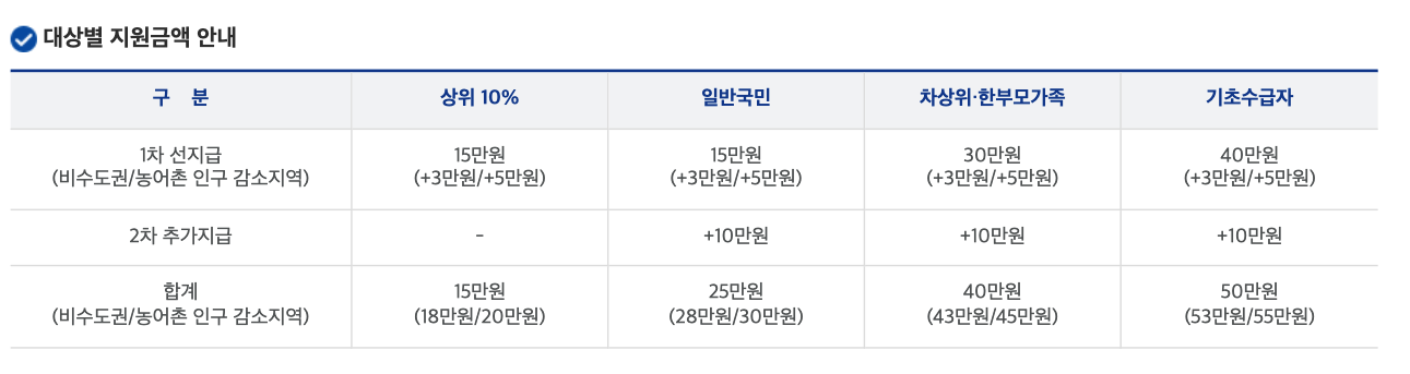 농어촌 인구 감소 지역 84개 지역에서는 1인당 5마원을 추가 지급힌다