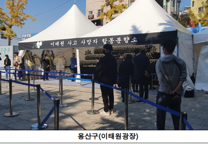 • 용산구 합동분향소 위치 : 이태원 광장(이태원로 134 앞) : 10.31(월) 오전 10시30분 부터 가능