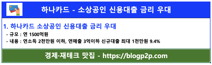 ✔소상공인·자영업자 지원 하나카드 매출대금 조기 지급 및 대환대출 신용대출 금리 우대