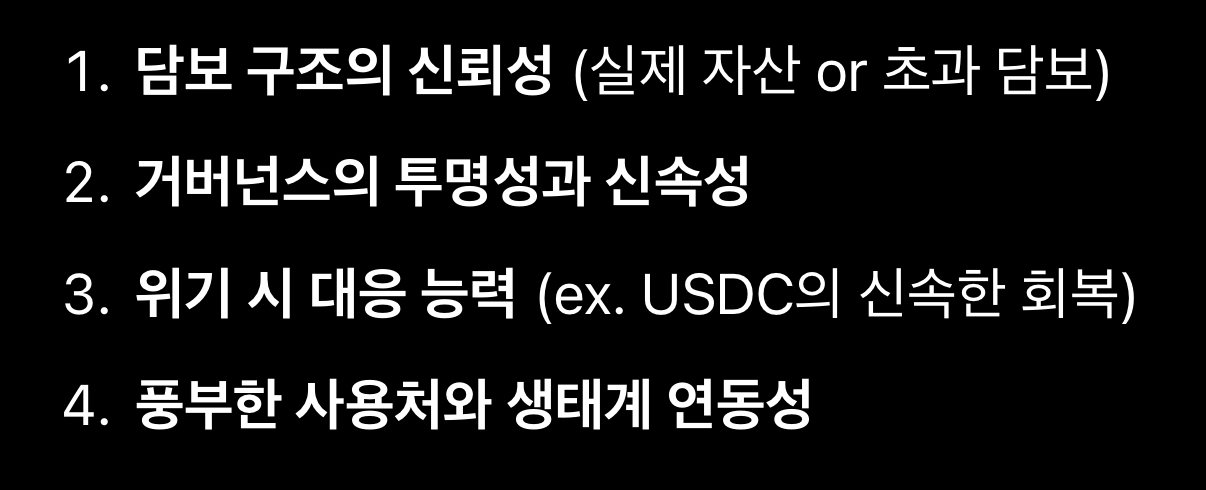 - 위기 시 대응 능력 (ex. USDC의 신속한 회복)