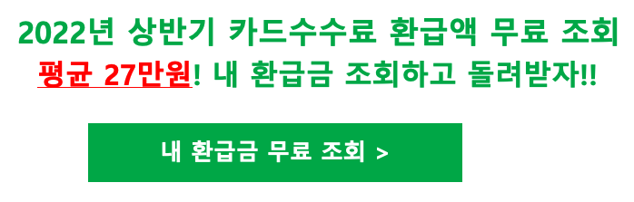 소상공인 카드수수료 환급 신청 조회 27만원 받기 2021년 하반기 기준으로 '22년 3월에 사업장 당 평균 27만원의 소상공인 카드수수료 환급금을 지급받았습니다. 이제 2022년 상반기인 1~6월까지의