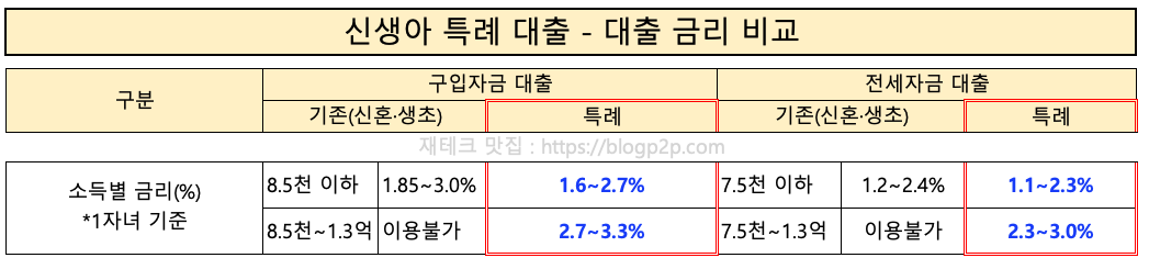 소득별 신생아 틀례대출 대출금리 비교