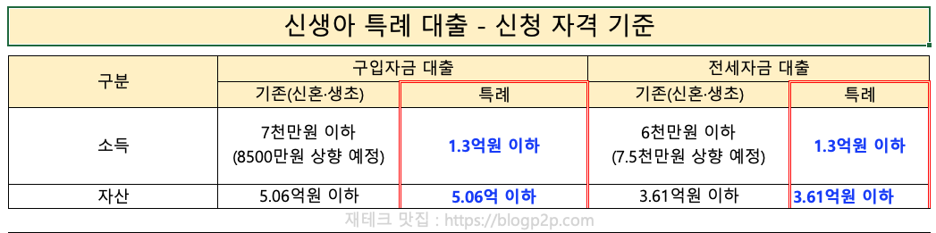 정부 정책자금중 하나로 내년 1월부터 시행하는 '신생아 특례 대출" 자격, 소득기준, 자산기준, 대상주택, 대출한도, 소득별 대출 금리 비교 등 상세하게 정리해둔 표입니다.