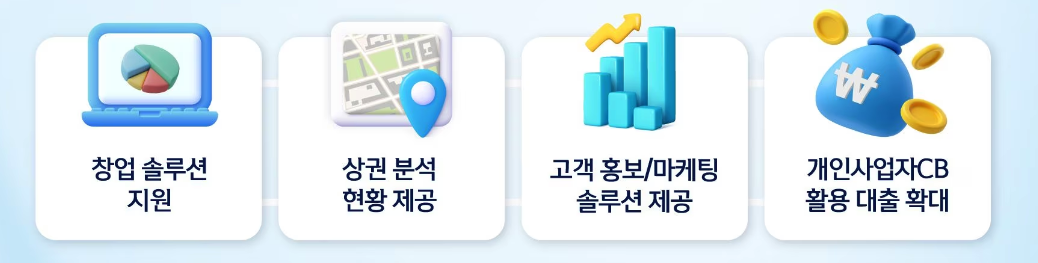 ‘마이크레딧(MyCredit)’ CB사업 기반으로 휴업 및 폐업 등을 선제적으로 관리하는 ‘소상공인 조기경보지수’ 개발 및 개인사업자 전용 대출상품도 확대한다.
