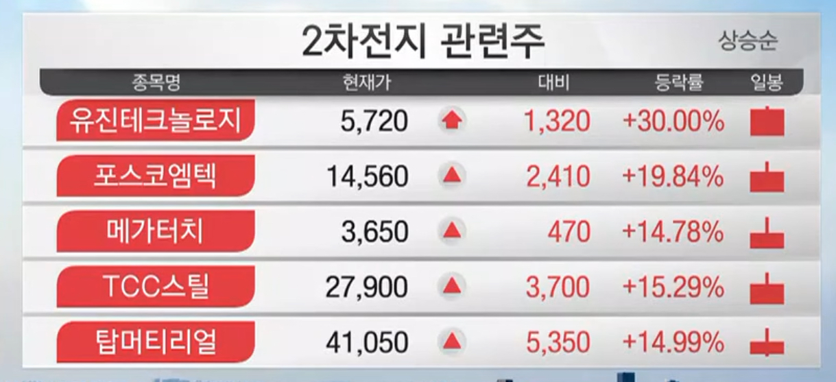 1. 2차전지 관련 대장주 상승 TOP 10 종목