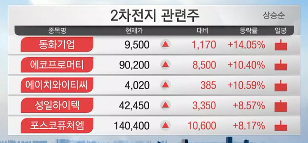 1. 2차전지 관련 대장주 상승 TOP 10 종목