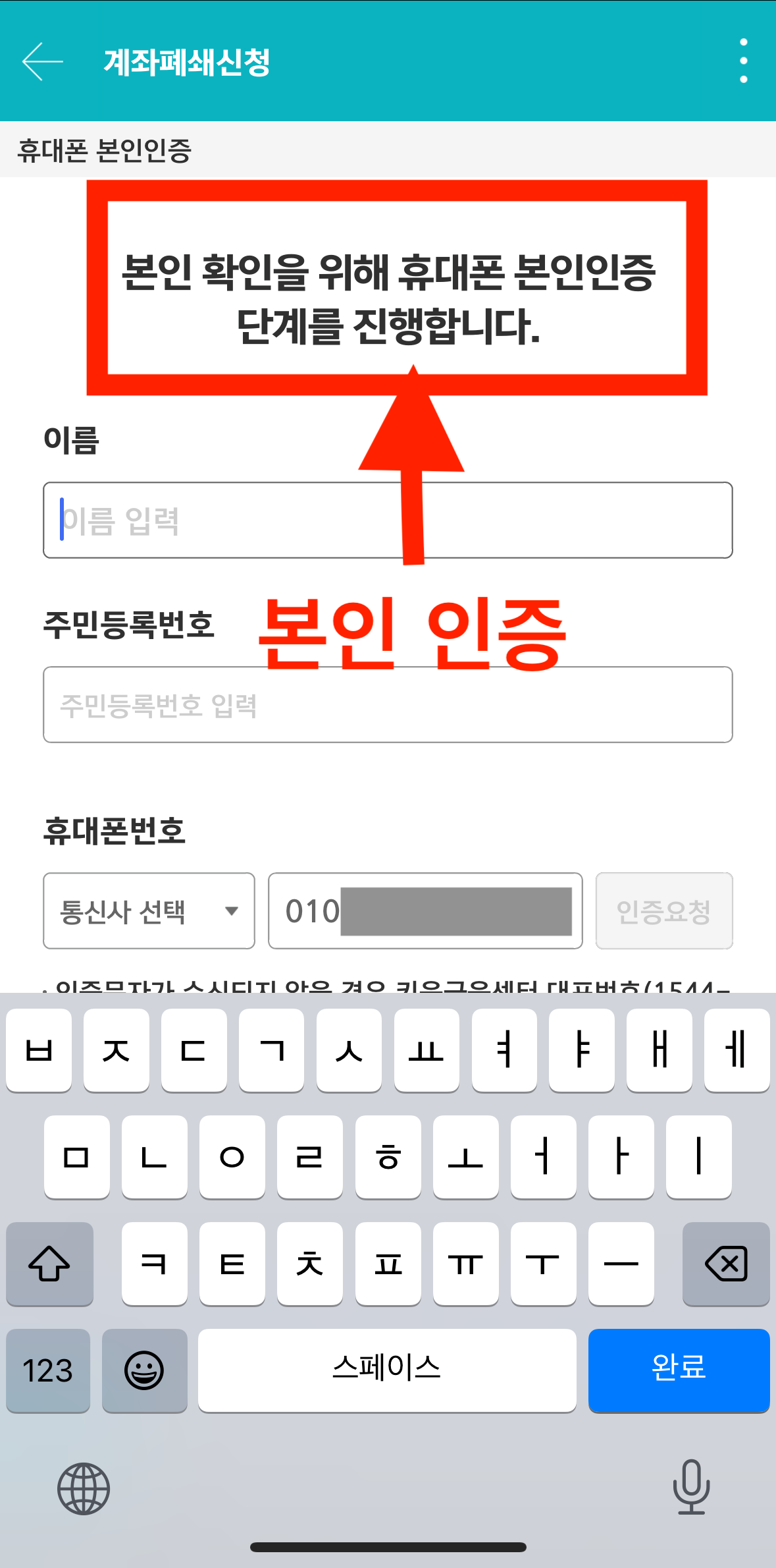 - 메뉴 > 뱅킹/업무 > 고객정보 > 계좌정보관리 > 계좌폐쇄신청 > 신청 > 본인인증