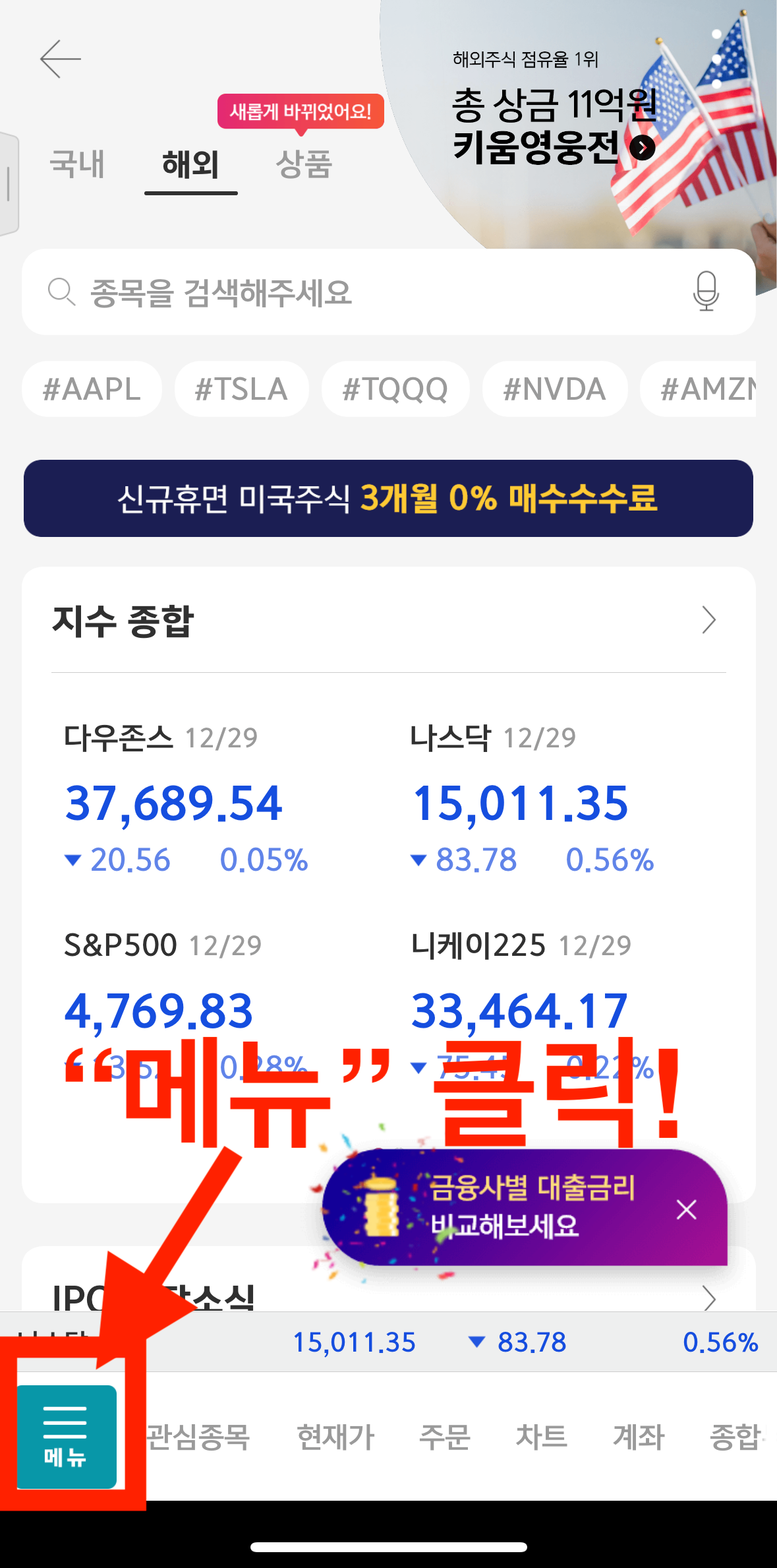 2. 좌측 하단 "메뉴" 클릭