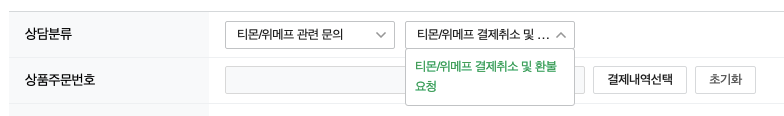 위 '티몬·위메프 취소&환불 서류"를 클릭하면 아래와 같이 네이버페이 고객센터로 이동합니다. 그리고 상담분류는 자동으로 "티몬/위메프 관련 문의" 대분류와 소분류는 "티몬/위메프 결제취소 및 환불요청 필드값이 자동으로 입력됩니다.