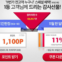 [할인쿠폰]- 11번가 1,100포인트+11% 할인쿠폰 이벤트 (0) | 2013.11.09 |