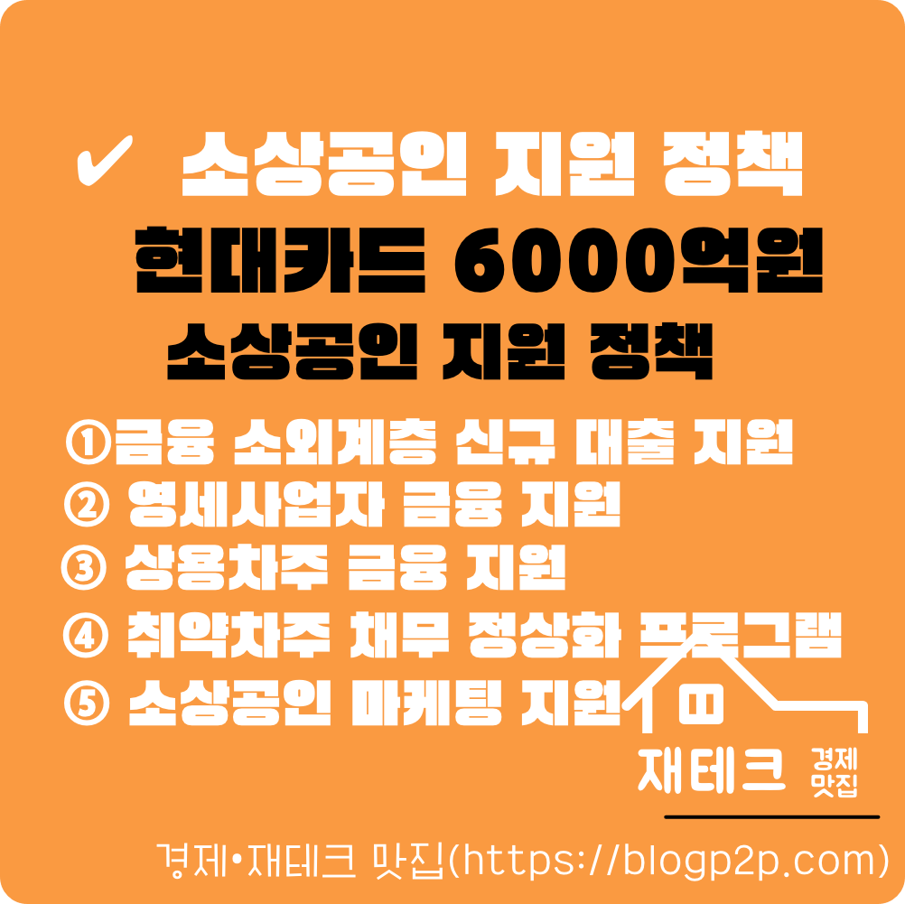 현대카드·현대커머셜 상생지원 규모는 6천억 원으로 금액별 내용은 아래와 같습니다.