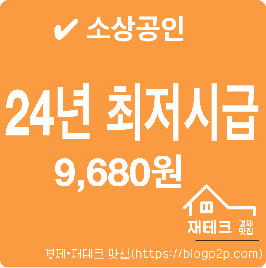 '24년 최저시급은 전년인 2023년 9,620원(월급 201만580원)에서 2.5% 인상한 9천680원으로 확정되었습니다.