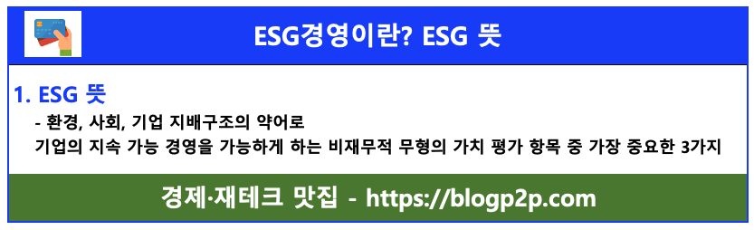 기업 활동에 친환경적인 부분까지 고려해서 기업을 운영하고 성과를 측정하는 기준